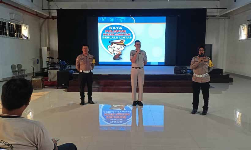 BAROMETERBISNIS.COM, Jakarta – Bekasi, Senin 21/07/2025. Dalam rangka edukasi keselamatan berlalu lintas, Jasa Raharja Bekasi di wakili oleh Sapta Hadiwinata dan Syaiful Fahmi bersama Unit Keamanan dan Keselamatan (Kamsel) Satlantas Polres Metro Bekasi Kota sosialisasikan Keselamatan Berlalu-lintas di SMAK St. John Harapan Indah. Kegiatan ini dipandu oleh AKP Sri Indira serta diikuti oleh siswa-siswi SMK St John.