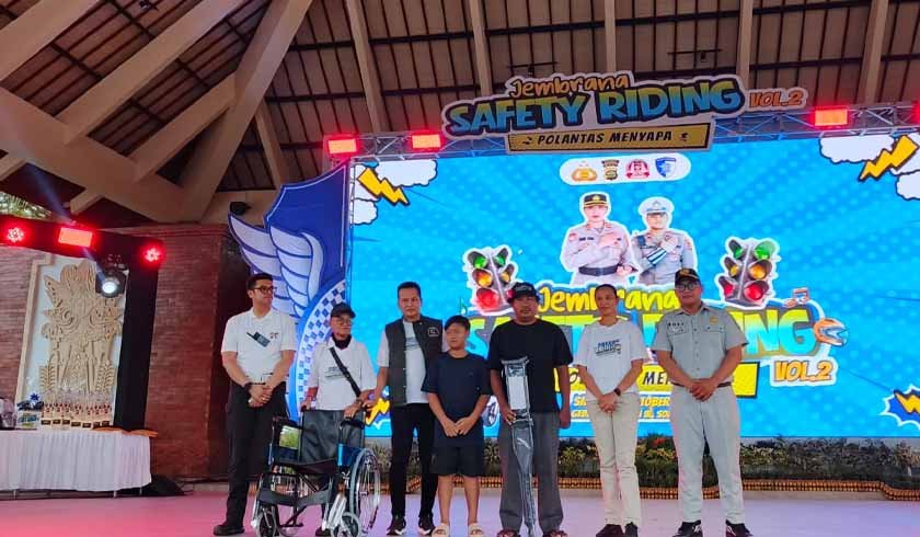 BAROMETERBISNIS.COM, Jakarta – PT Jasa Raharja Kantor Wilayah Bali melalui Penanggung Jawab Samsat Jembrana, Roby Septianto, turut serta dalam kegiatan Pelayanan Safety Riding, Safety Campaign, Pertolongan Pertama Gawat Darurat (PPGD), serta penyerahan bantuan sosial berupa kursi roda dan tongkat kepada korban kecelakaan lalu lintas.